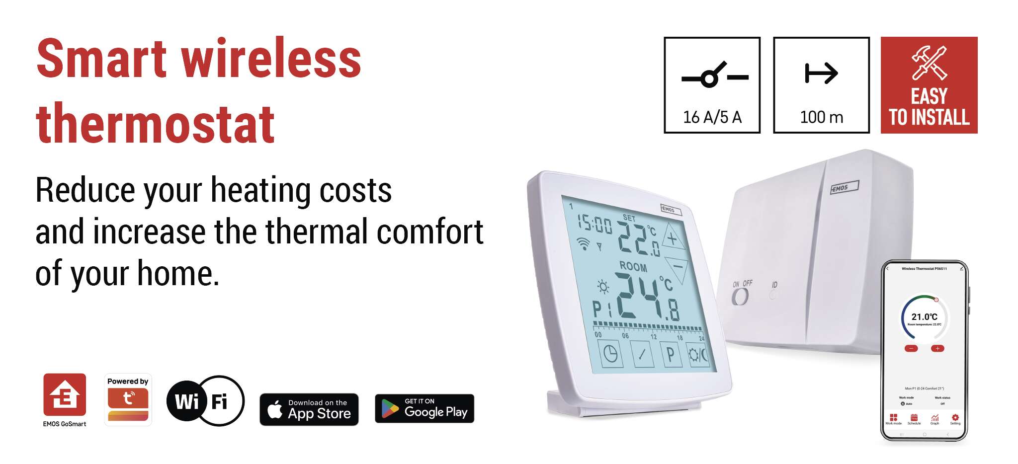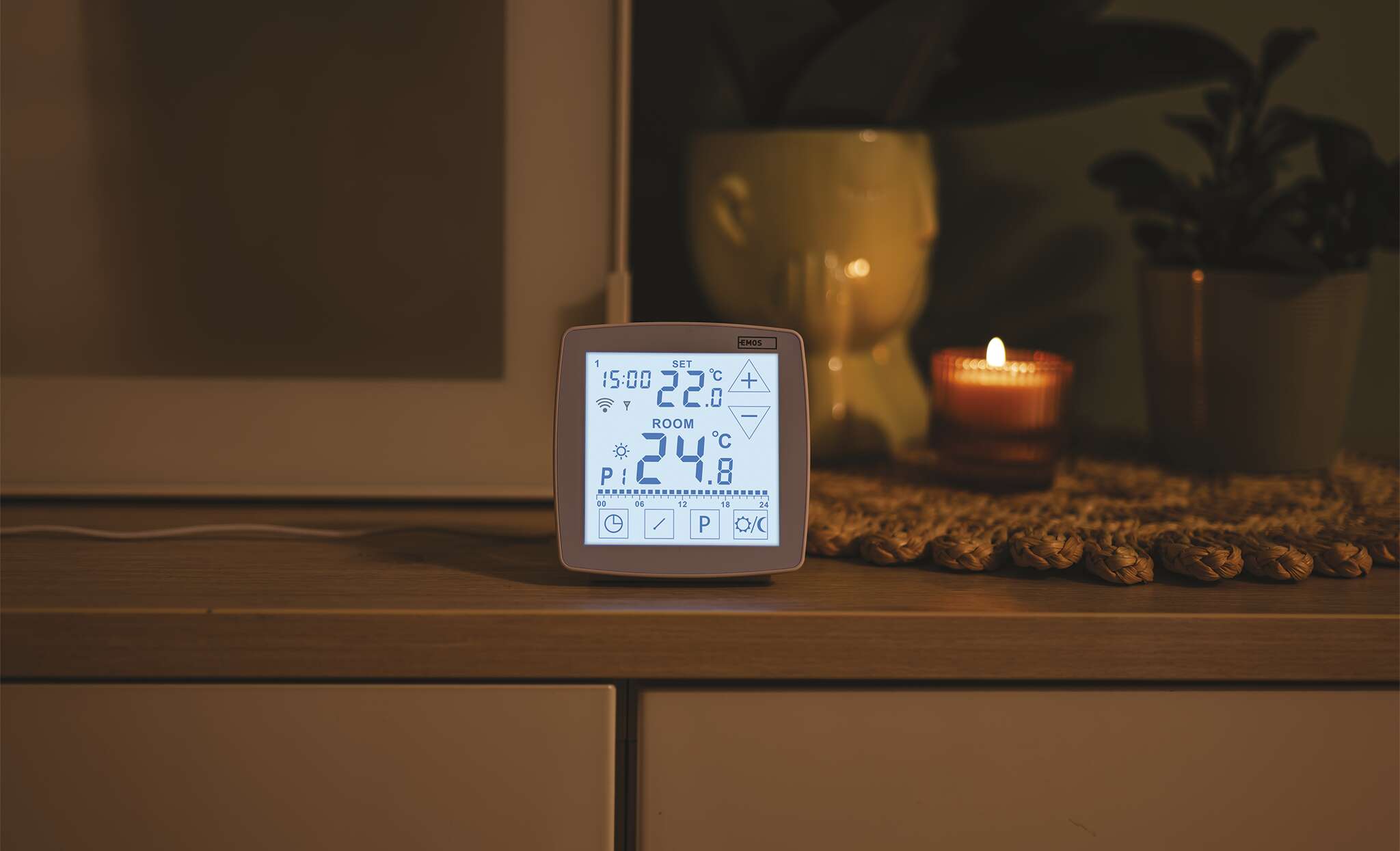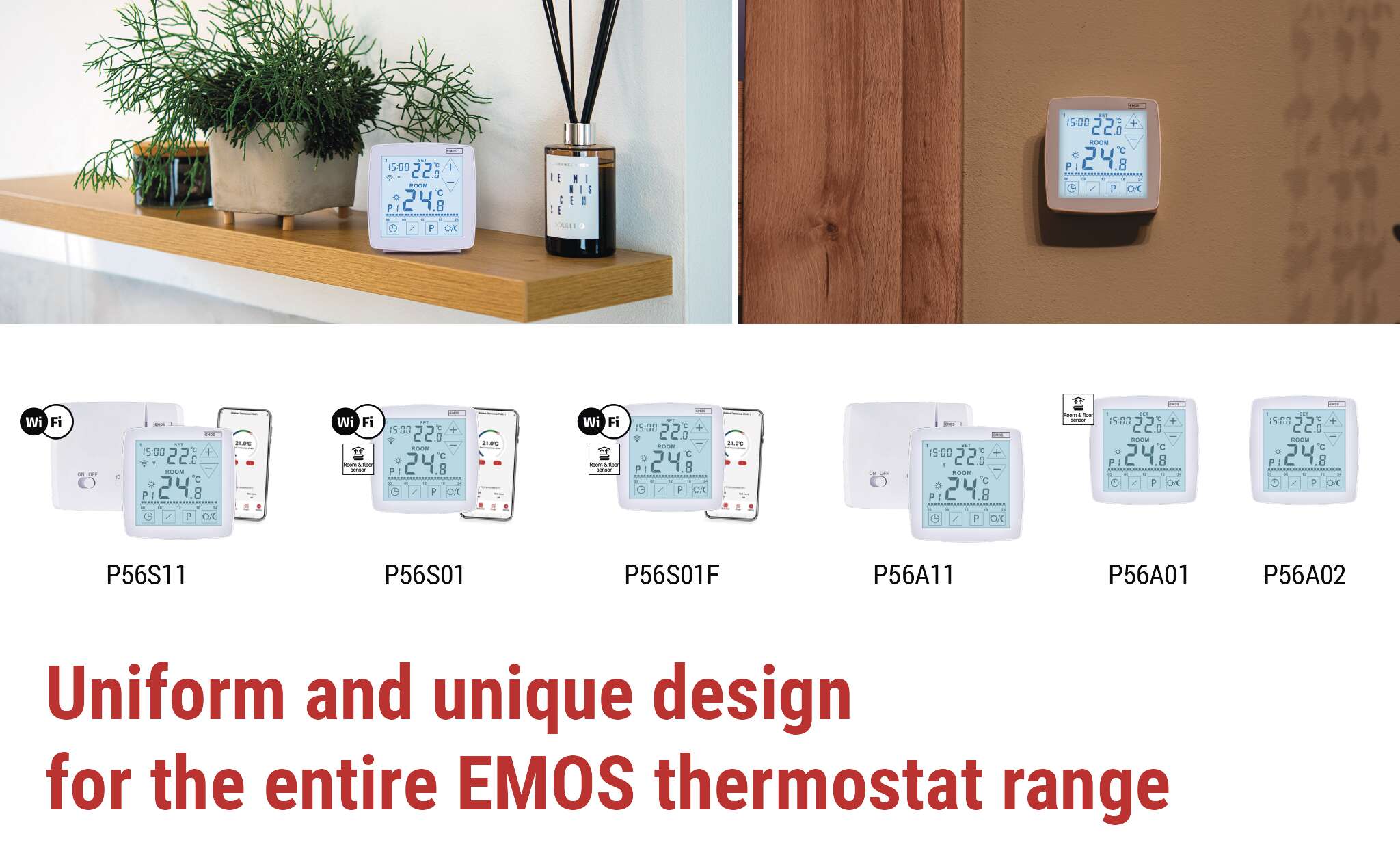 Atraskite naują termostatų asortimentą - nuo klasikinių iki išmaniųjų, su grindų jutikliu arba įmontuotų, sukurtų pagal išskirtinį, tik EMOS skirtą dizainą.