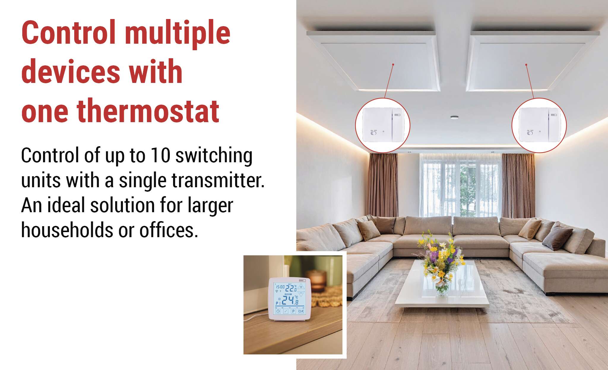 Išmanusis termostatas P56S11 su 16 A jungiamąja rele taip pat gali valdyti didesnes apkrovas turinčius prietaisus, pavyzdžiui, infraplokštes arba tiesioginio kaitinimo šildytuvus. Jis siūlo iki 6 temperatūros programų per dieną ir 3 vartotojo reguliuojamus sc nustatymus, kuriuos lengva pritaikyti savo poreikiams. Naudodami švenčių režimo funkciją, galite lengvai nustatyti temperatūrą ilgesniam laikui.