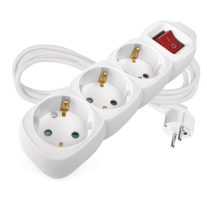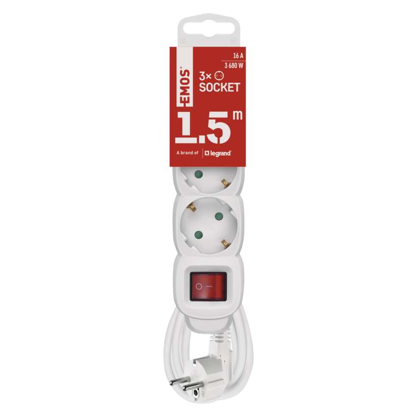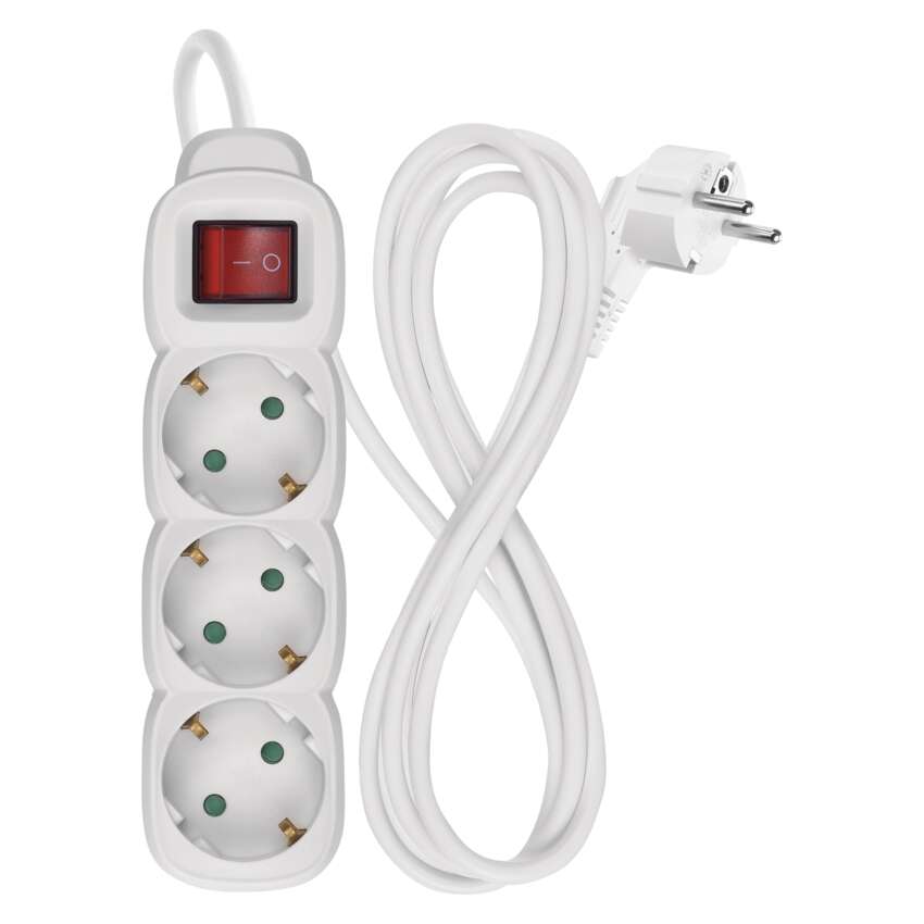 Ilgintuvas 1,5 m / 3 lizdai / su jungikliu / baltas / PVC / 1,5 mm2