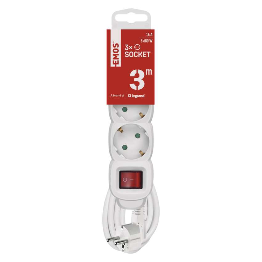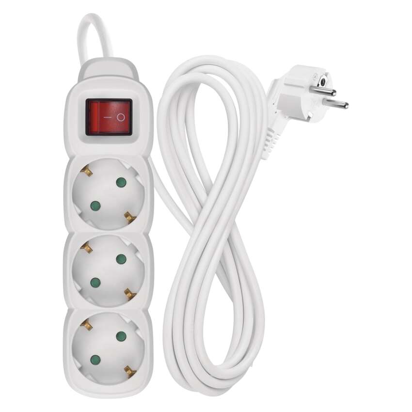 Ilgintuvas 3 m / 3 lizdai / su jungikliu / baltas / PVC / 1,5 mm2