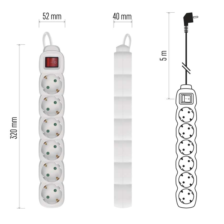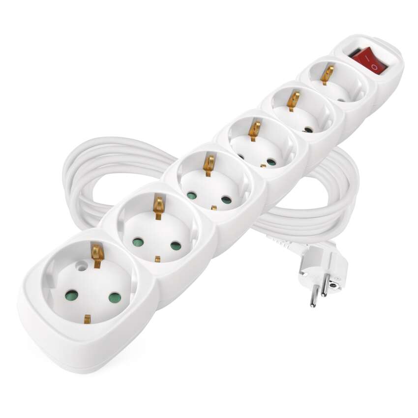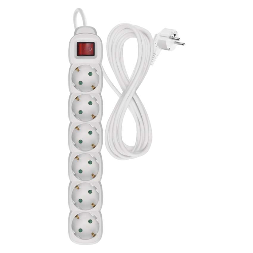Ilgintuvas 5 m / 6 lizdai / su jungikliu / baltas / PVC / 1,5 mm2