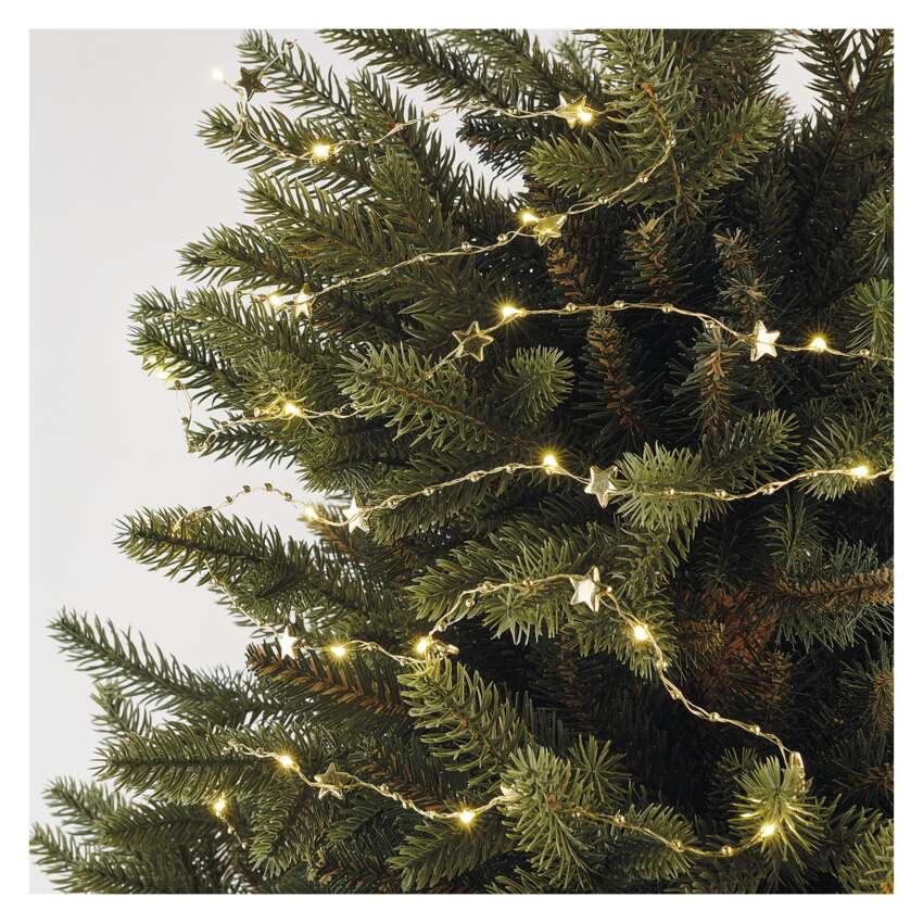 LED auksinė kalėdinė girlianda – žvaigždės, 1,9 m, 2x AA, vidaus, šiltai balta, laikmatis