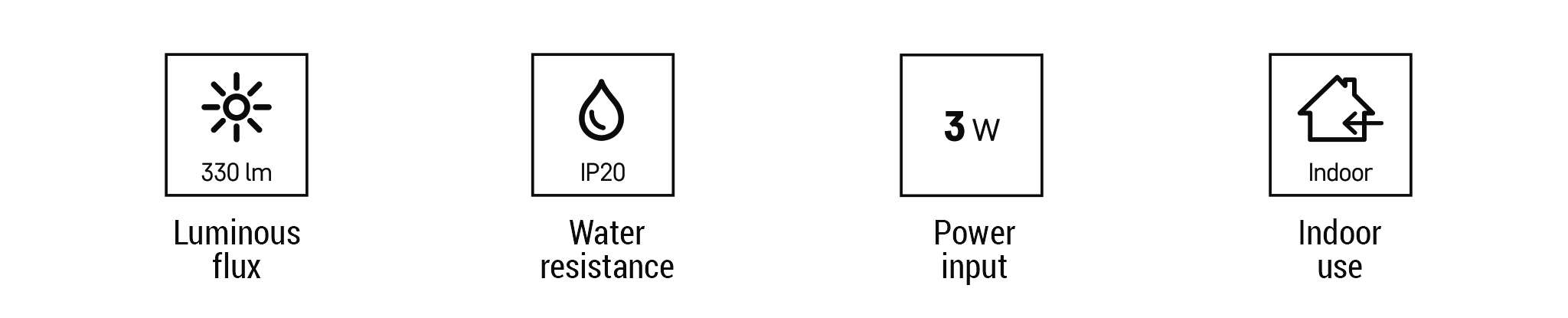 Suteikia saugią orientaciją ir leidžia greitai bei saugiai judėti. Šaltai balta šviesos spalva užtikrina aiškų ir lengvai atpažįstamą evakuacijos kelio ženklinimą. Patvari konstrukcija ir stabilus šviesos intensyvumas užtikrina patikimą veikimą visada, kai to reikia.