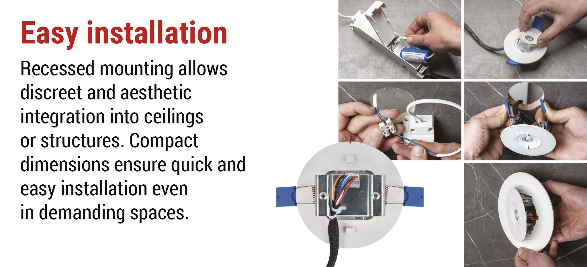 Dėl aiškių instrukcijų ir universalių tvirtinimo galimybių šviestuvą galite lengvai sumontuoti lubose, nereikalaudami profesionalų įsikišimo. Montavimas greitas, saugus ir intuityvus.