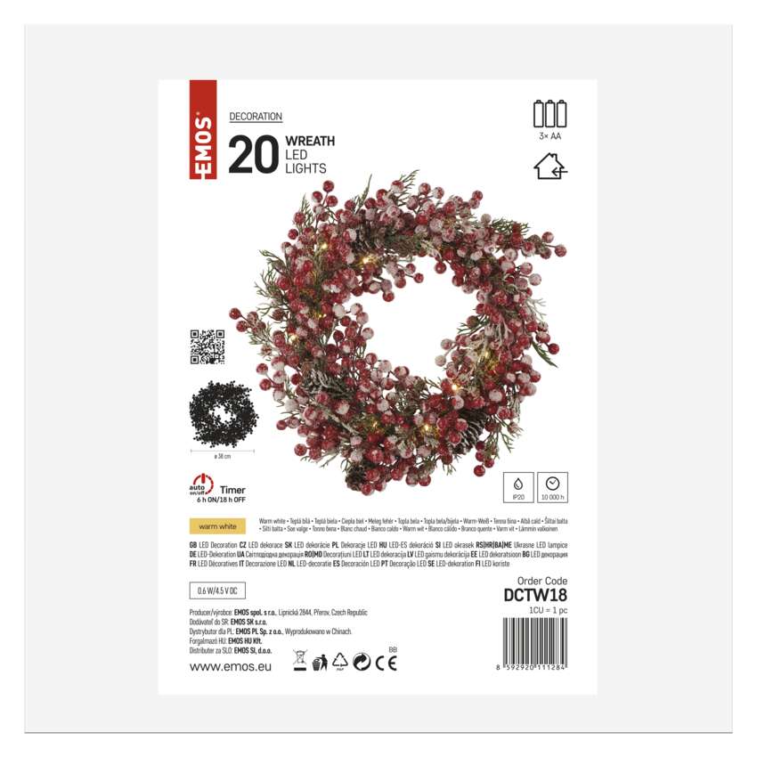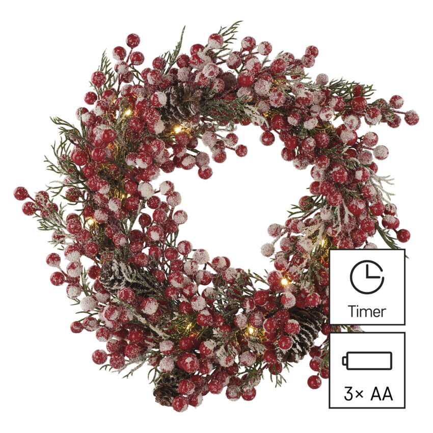 LED dekoruotas kalėdinis vainikas, 38 cm, 3x AA, vidaus, šiltai baltas, laikmatis