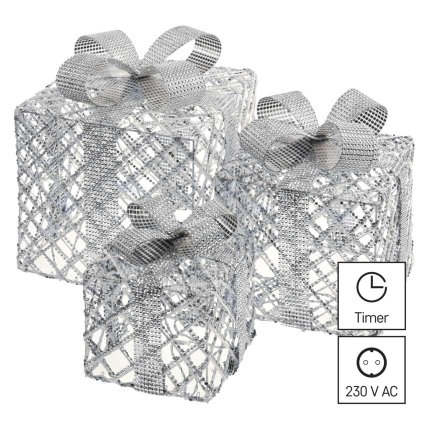 LED dovanos, 3 dydžiai, vidaus, šaltai balta, laikmatis