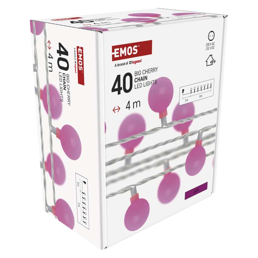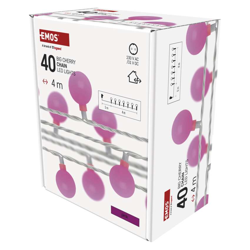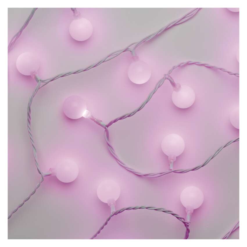 LED girlianda Cherry – 2,5 cm rutuliukai, 4 m, lauko ir vidaus, rožinė, laikmatis
