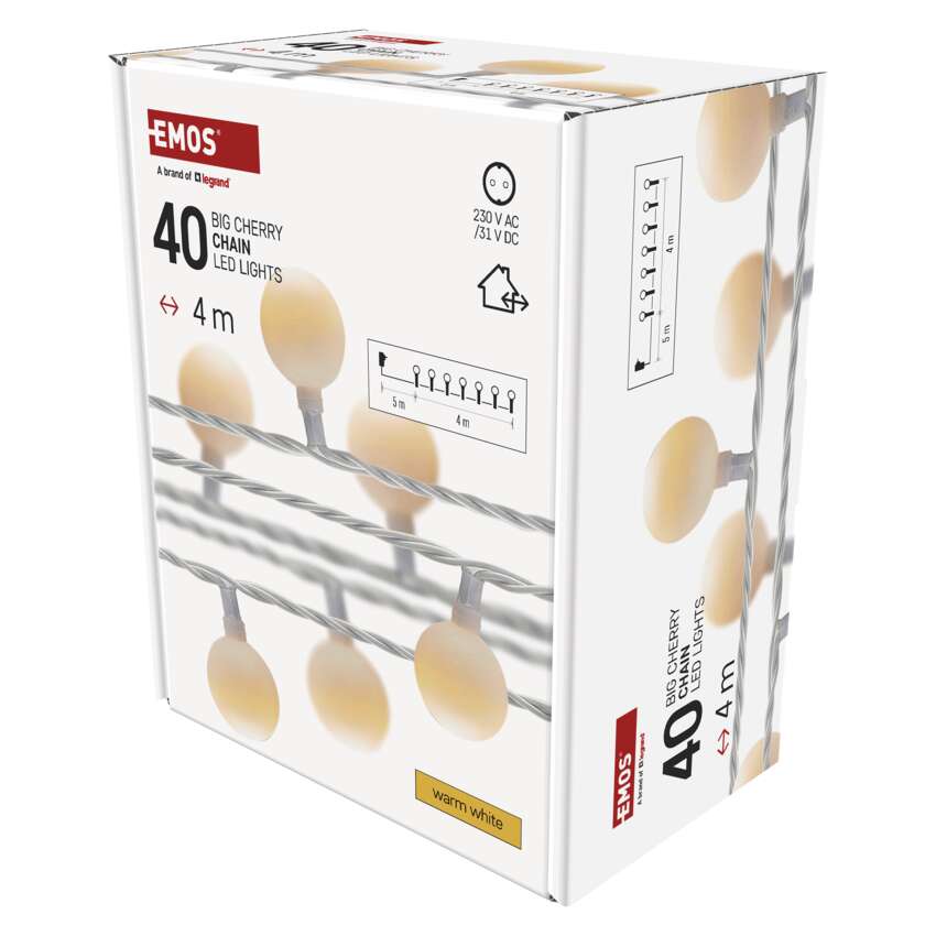 LED girlianda Cherry – 2,5 cm rutuliukai, 4 m, lauko ir vidaus, šiltai balta, laikmatis