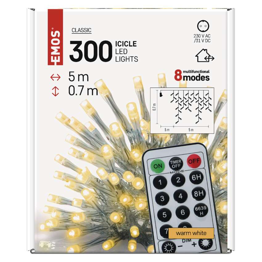"EMOS" KLASIKINĖS LED grandinės yra kelių formų - klasikinės grandinės, klasteriai ir stalaktitai. Jos nepakeičiamos sukuriant tinkamą šventinę atmosferą. Jie puikiai atrodys ant tradicinės Kalėdų eglutės, tinka puošti baldus, turėklus, sijas ar duris interjere.Juos taip pat galite naudoti lauke, kad apšviestumėte savo krūmus, medžius, pavėsines, pavėsines ir t. t.