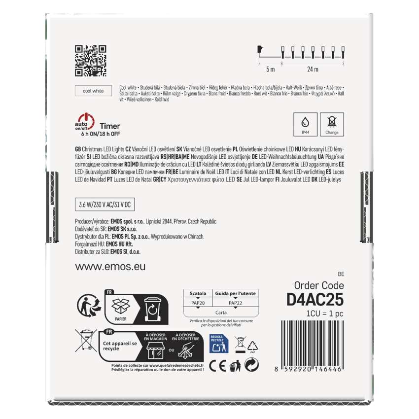 LED kalėdinė girlianda, 24 m, lauko ir vidaus, šaltai balta, 8 režimai, laikmatis
