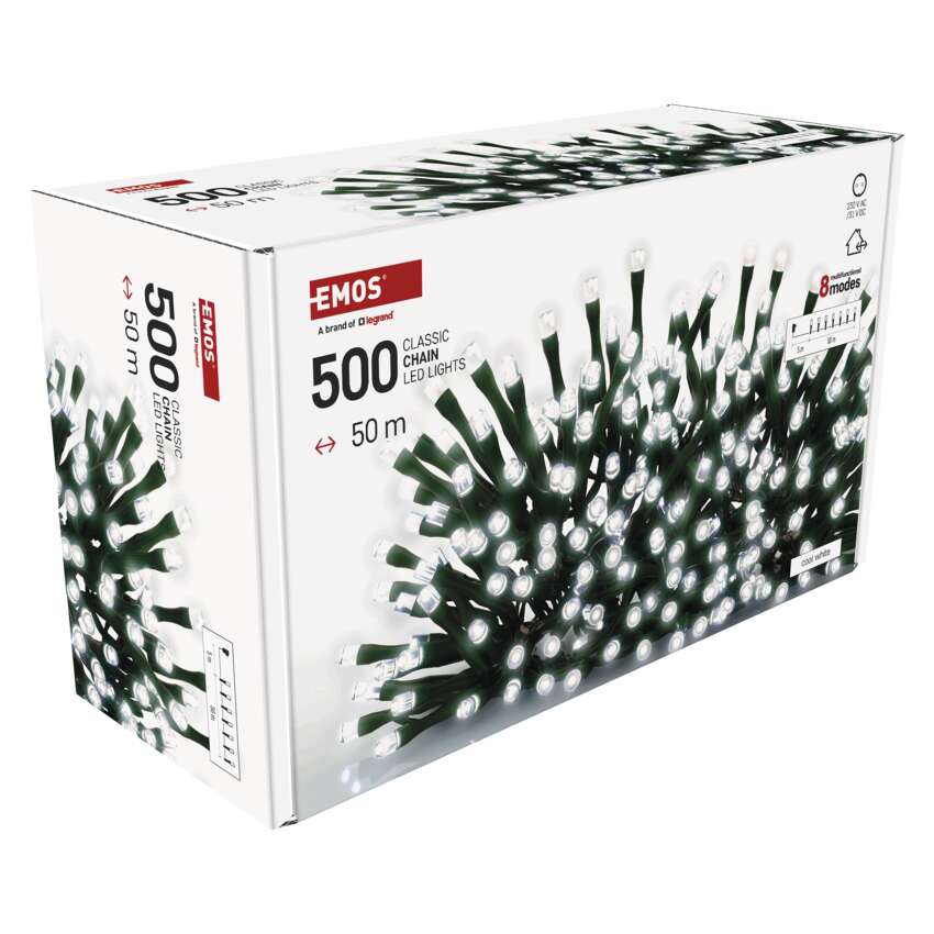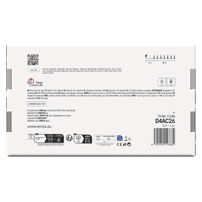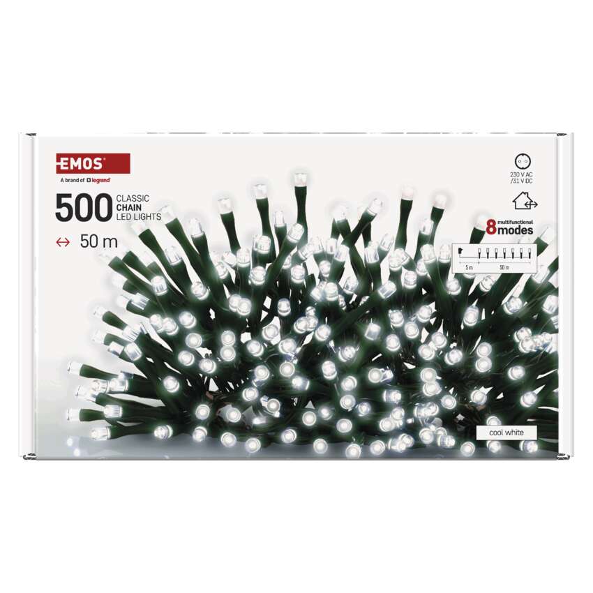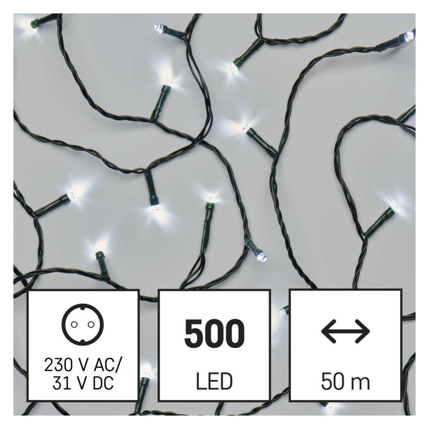 LED kalėdinė girlianda, 50 m, lauko ir vidaus, šaltai balta, 8 režimai, laikmatis