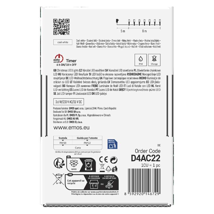 LED kalėdinė girlianda, 8 m, lauko ir vidaus, šaltai balta, 8 režimai, laikmatis