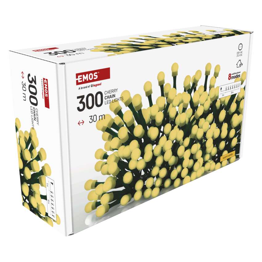 LED kalėdinė girlianda Cherry–rutul.,30 m,lauko ir vidaus,šiltai balta,8 režimai,laikmatis