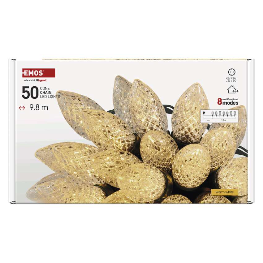 LED kalėdinė girlianda – kūgiai, 9,8 m, lauko ir vidaus, šiltai balta, 8 režimai