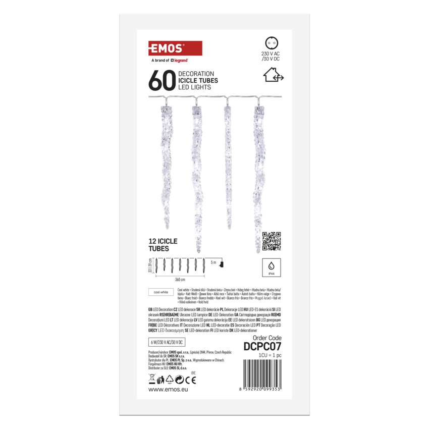 LED kalėdinė girlianda – varvekliai, 12 vnt., 3,6 m, lauko ir vidaus, šaltai balta