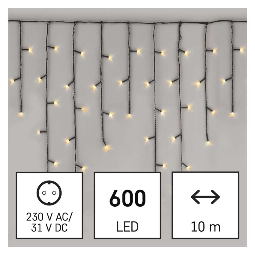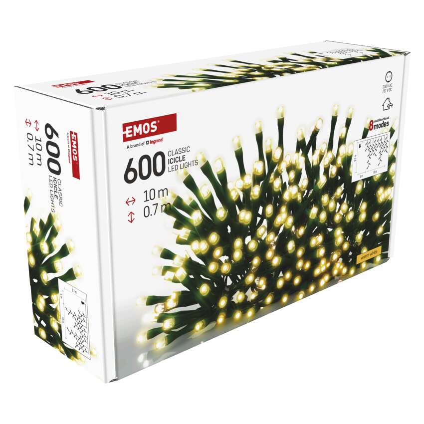 EMOS CLASSIC LED grandinės yra kiekvienos formos - klasikinės grandinės, klasteriai ir stalaktitai. Jos nepakeičiamos kuriant tinkamą šventinę atmosferą. Jie puikiai atrodys ant tradicinės Kalėdų eglutės, tinka puošti baldus, turėklus, sijas ar duris interjere.Juos taip pat galite naudoti lauke, kad apšviestumėte savo krūmus, medžius, pavėsines, pavėsines ir t. t.