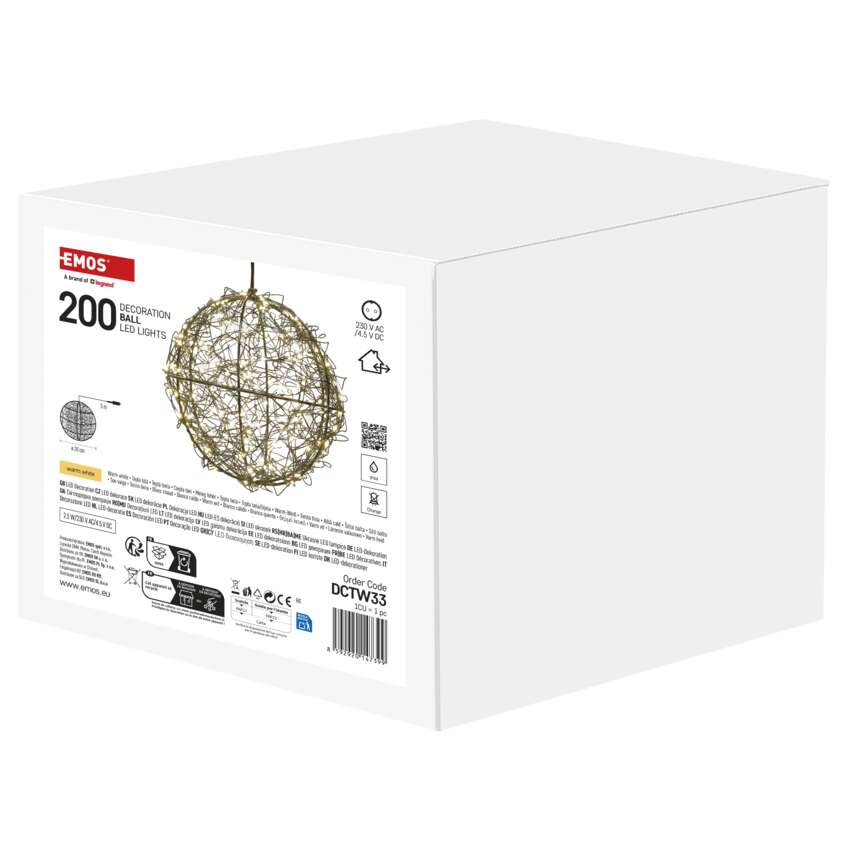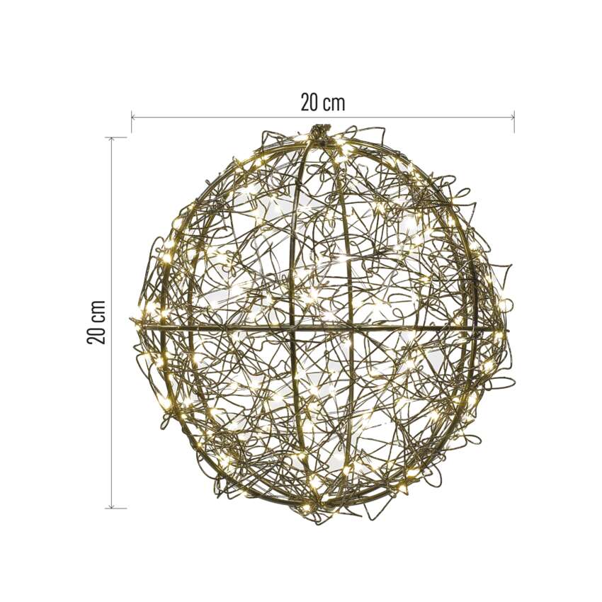 Sukurkite žavingą atmosferą su elegantiška dekoratyvine sfera, kuri apšvies bet kurį kambarį dėl 200 LED diodų. 20 mirgančių LED lempučių sukuria unikalų blyksėjimo efektą. Ją idealiai tinka tiek kabinti, tiek statyti ant stalo ar grindų - namuose, sode ir per šventinius renginius.