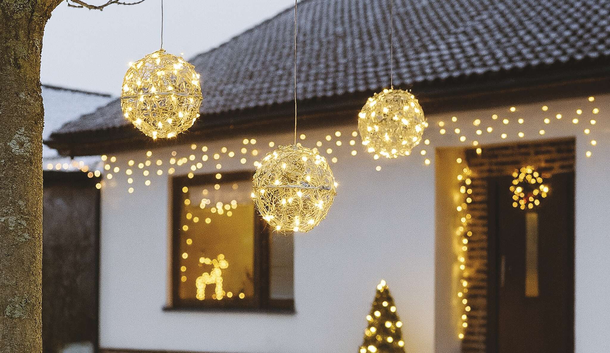 LED kalėdiniai rutuliai – 200 LED, lauko ir vidaus, šilta balta spalva