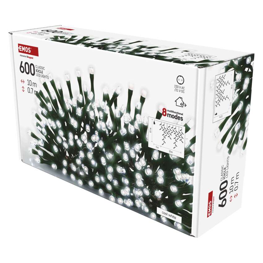 EmOS CLASSIC LED grandinės yra kelių formų - klasikinės grandinės, klasteriai ir stalaktitai. Jos nepakeičiamos sukuriant tinkamą šventinę atmosferą. Jie puikiai atrodys ant tradicinės Kalėdų eglutės, tinka puošti baldus, turėklus, sijas ar duris interjere.Juos taip pat galite naudoti lauke, kad apšviestumėte savo krūmus, medžius, pavėsines, pavėsines ir t. t.