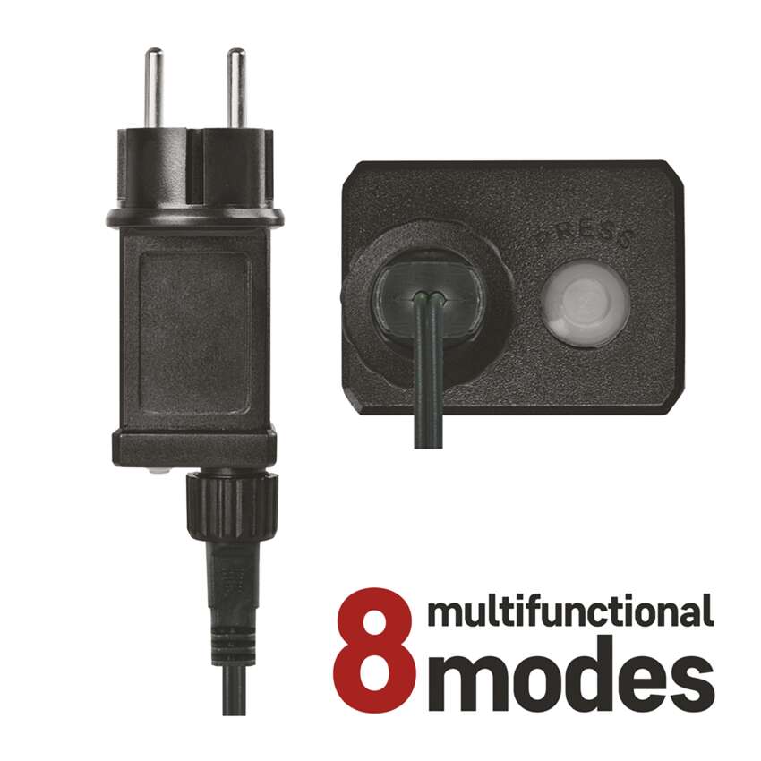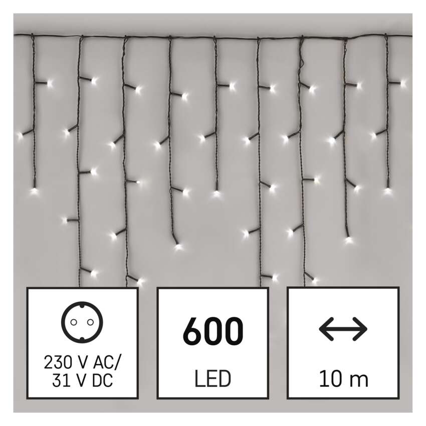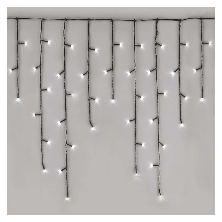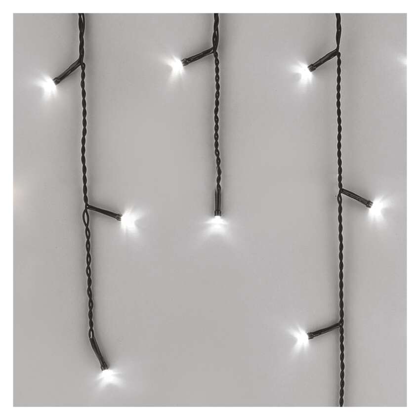 Kalėdinės grandinės CLASSIC - daugiafunkciniai stalaktitai (ledukai) yra vienas iš "dvimačių" apšvietimo sprendimų. Šioje apšvietimo formoje kiekviena kabanti grandinėlė su LED lemputėmis yra skirtingo ilgio ir sukuria natūralaus stalaktito įspūdį. Grandinėlės leidžia pasirinkti vieną iš aštuonių iš anksto nustatytų šviesos režimų, kurie apšviečia bet kokią erdvę ir patinka tiek vaikams, tiek suaugusiesiems. pagrindiniu režimu visos lemputės šviečia nuolat, o likusieji septyni režimai - tai įvairių mirksėjimo, išjungimo ir įjungimo režimų derinys. Galite papuošti laiptus, turėklus, pakabinti žibintus languose arba pakabinti juos balkonuose. Taip pat galite išbandyti ne tokį tradicinį panaudojimą ir uždėti juos ant vartų, tvoros ar vartelių. Žibintai išsiskirs ant jūsų namo frontono.Dėl galimybės nustatyti skirtingus apšvietimo režimus jie patiks ir tiems, kurie reikia subtilios ir statiškos šviesos dekoracijos, ir tiems, kurie ieško dinamiškos šviesos dekoracijos.