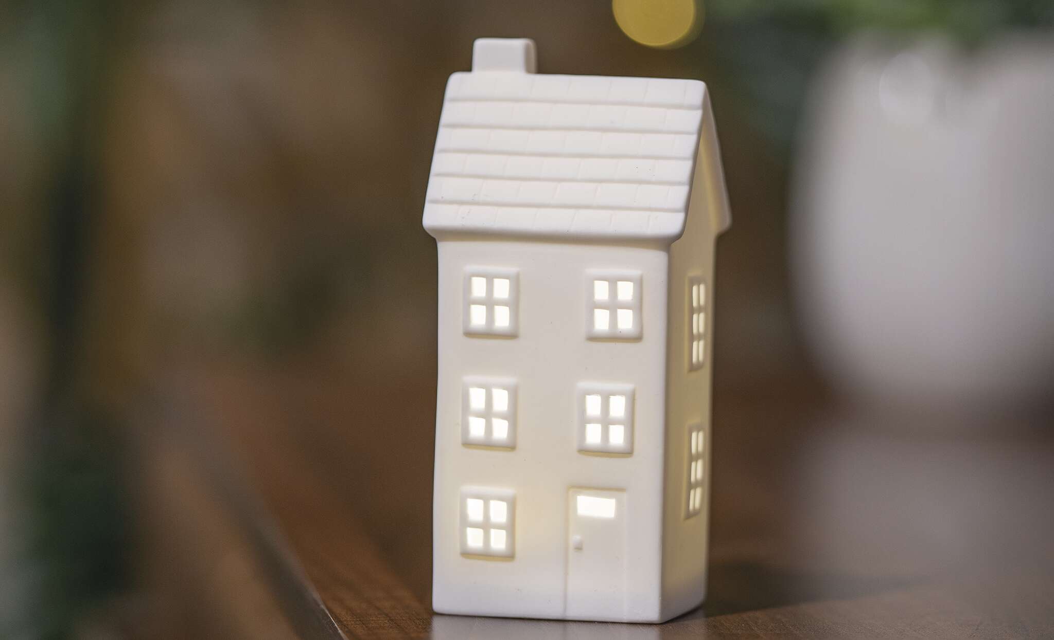LED keramikinis namelis, 16 cm, 1x CR2032, vidinis, šilta balta šviesa, laikmatis