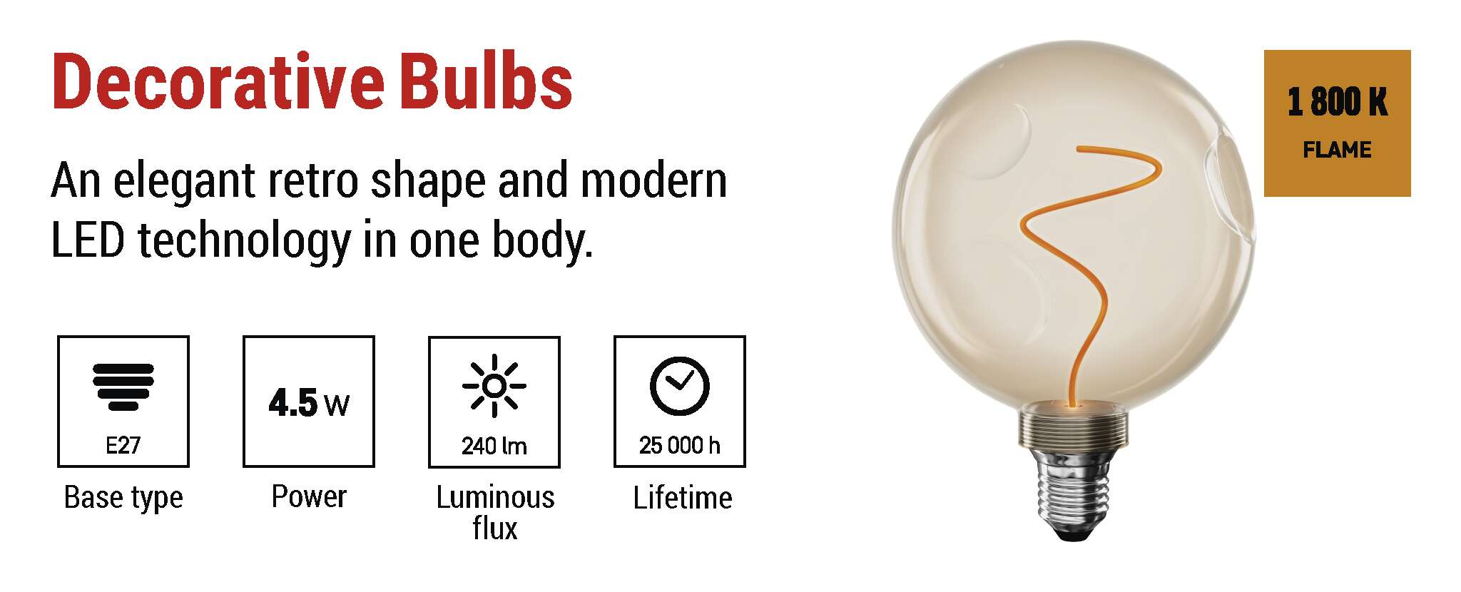 Atraskite šiltos šviesos magiją su mūsų stilingomis LED lemputėmis, kuriose modernus energijos taupymas derinamas su klasikiniu dizainu. Jų chromatinė temperatūra yra 1 800 K, todėl jos sukuria šiltą ir jaukią atmosferą, idealiai tinkančią jūsų namams ir komercinėms patalpoms.
