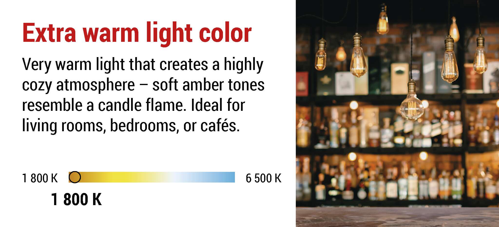 Šilta šviesa sukuria autentišką ir jaukią atmosferą, kuri puikiai išryškina natūralų spalvų ir tekstūrų grožį bet kurioje erdvėje. Dėl švelnaus ir švelnaus kolorito ji gali išryškinti detales ir suteikti interjerui jaukumo bei stiliaus. Ji idealiai tinka ne tik namams, kur padeda atsipalaiduoti ir gerai jaustis, bet ir komercinėms patalpoms, kur sukuria malonią ir svetingą aplinką lankytojams ir darbuotojams.