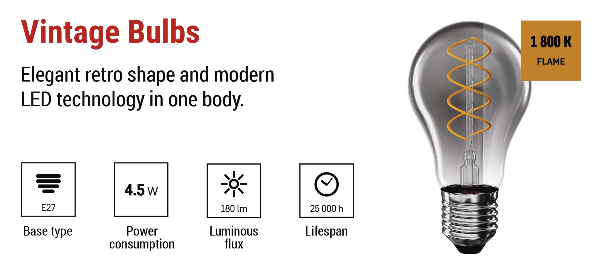LED lemputė DECO SMOKED A60 / E27 / 4,5 W (19 W) / 180 lm / flame