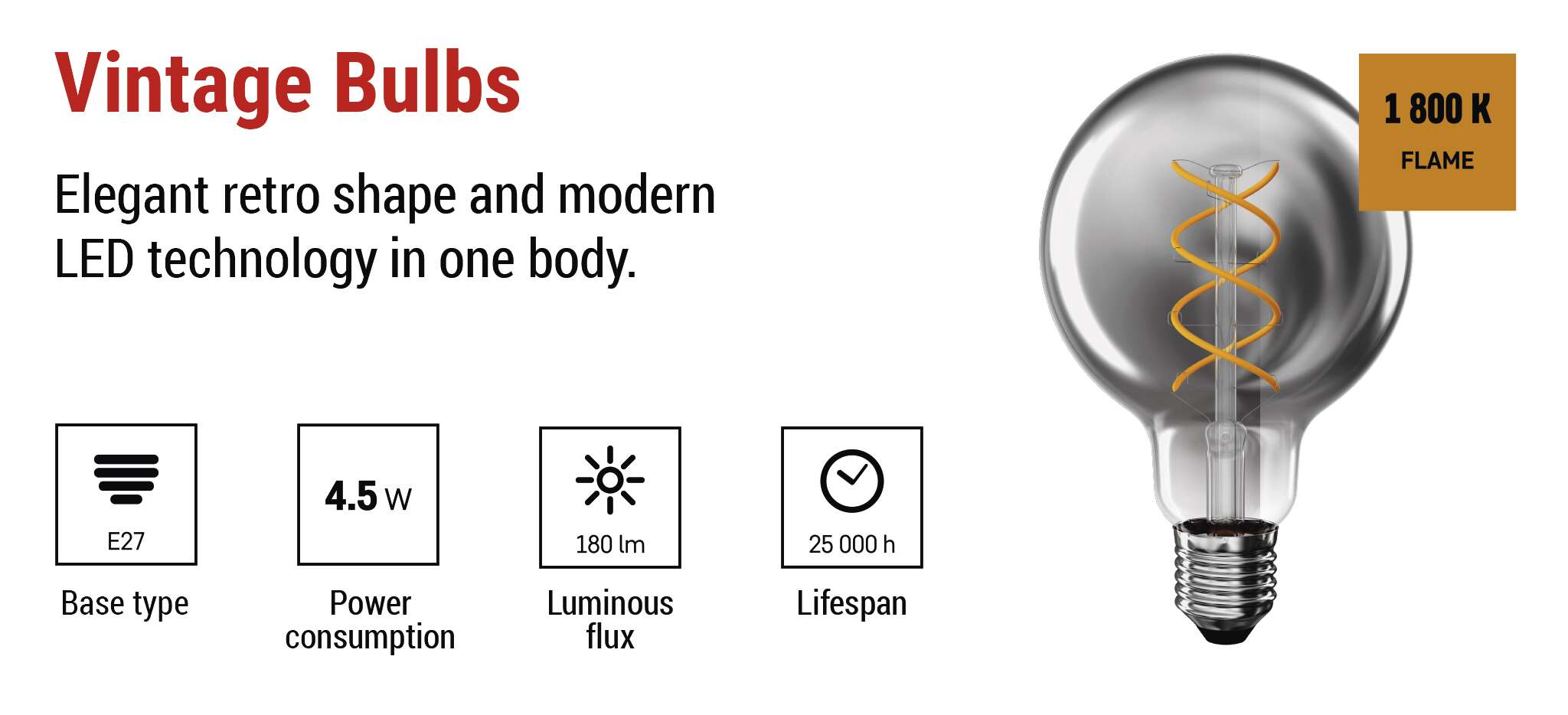 LED lemputė DECO SMOKED G95 / E27 / 4,5 W (19 W) / 180 lm / flame