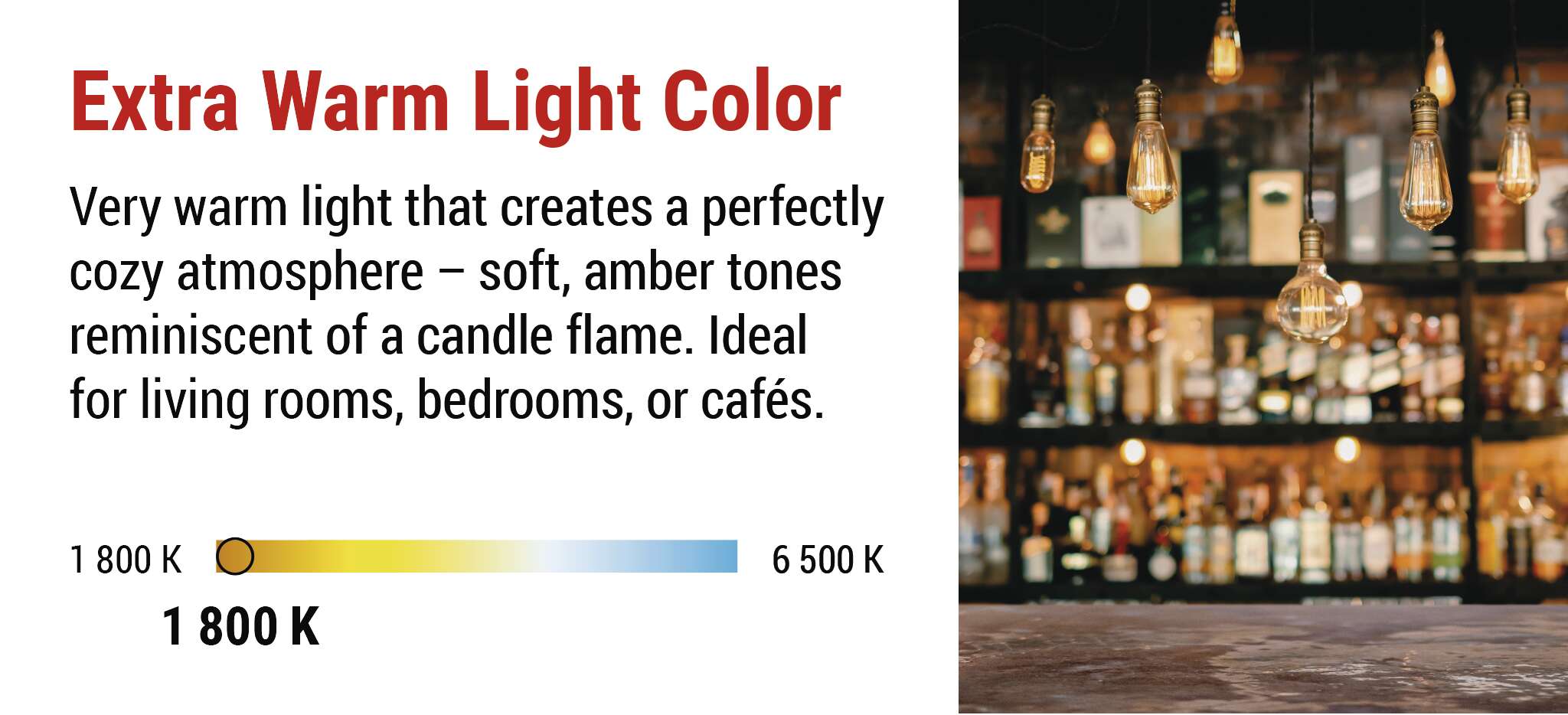 Šilta šviesa sukuria autentišką ir jaukią atmosferą, kuri puikiai išryškina natūralų spalvų ir tekstūrų grožį bet kurioje erdvėje. Dėl švelnaus ir švelnaus kolorito ji gali išryškinti detales ir suteikti interjerui jaukumo bei stiliaus. Ji idealiai tinka ne tik namams, kur padeda atsipalaiduoti ir gerai jaustis, bet ir komercinėms patalpoms, kur sukuria malonią ir svetingą aplinką lankytojams ir darbuotojams.