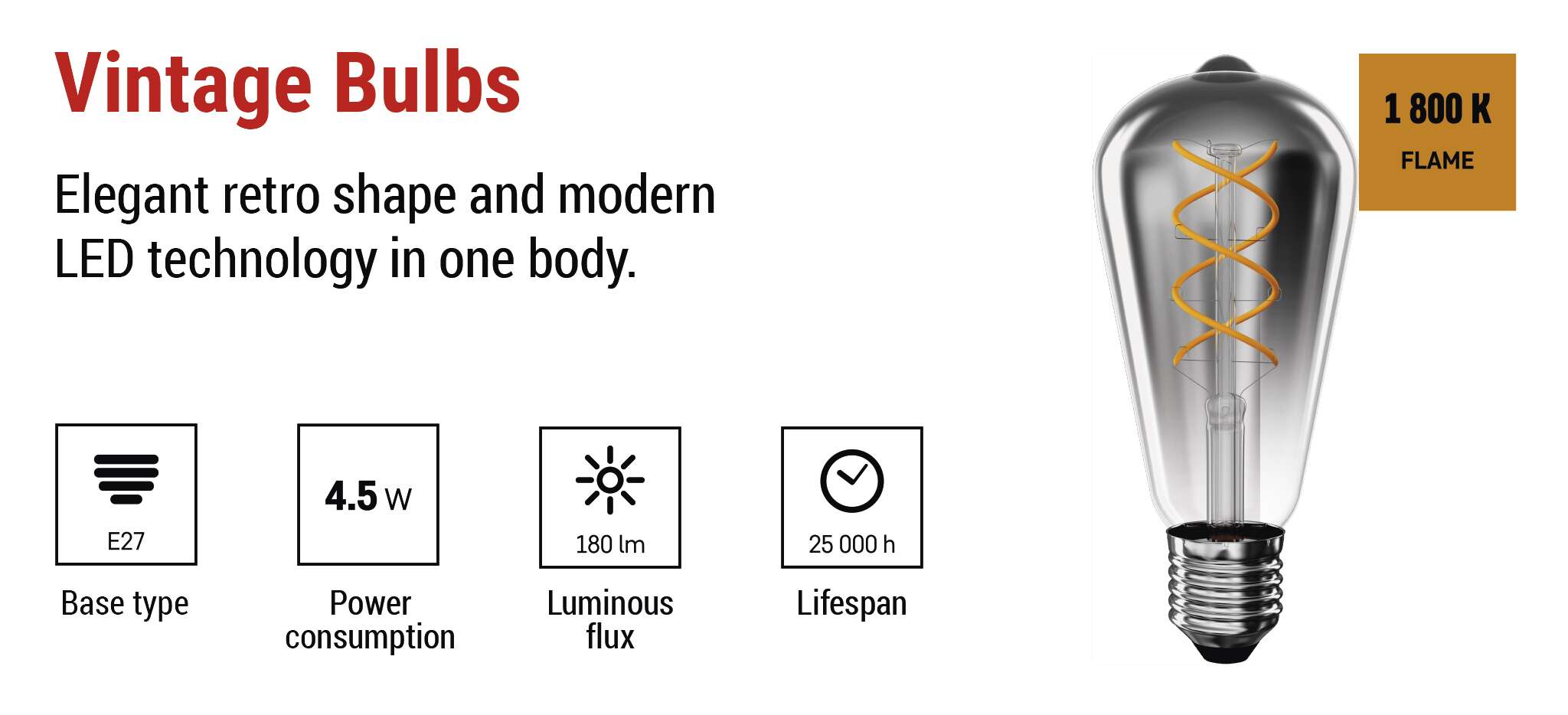 LED lemputė DECO SMOKED ST64 / E27 / 4,5 W (19 W) / 180 lm / flame