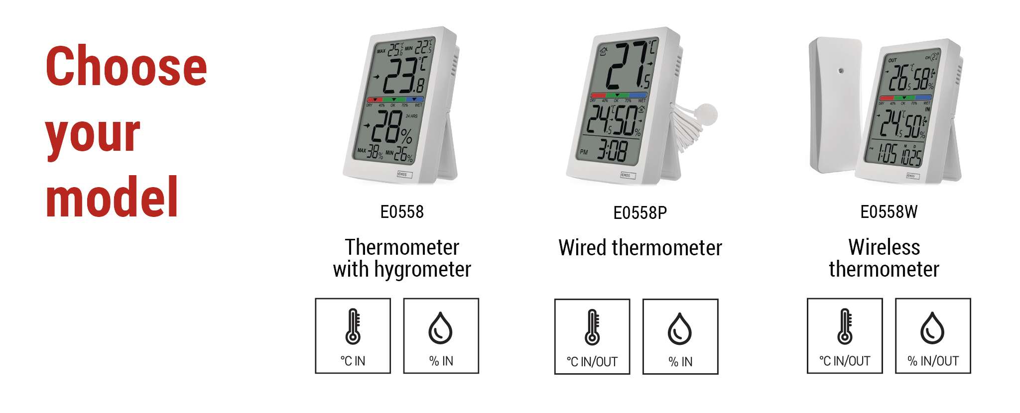 Pateikiame jums pilną termometrų asortimentą, pasižymintį skirtingomis funkcijomis, tačiau vienijamą vieno elegantiško ir vienodo dizaino - tiesiog išsirinkite sau tinkamiausią.